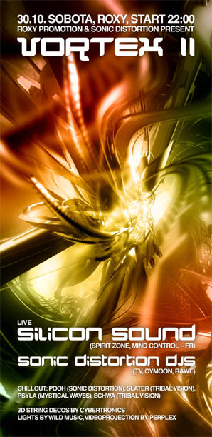 Live: Silicon sound (spirit Zone, mind control - Fr) Sonic distortion djs: TV (ketuh records), Cymoon, Rawe Chillout: Pooh (sonic distortion), Slater & Schwa (tribal vision), Psyla (mystical Waves) 3d string decos by Cybertronics, Lights by Wild music, specialni videotrip Perplex, 000333 & embryo (M1M0-tv)